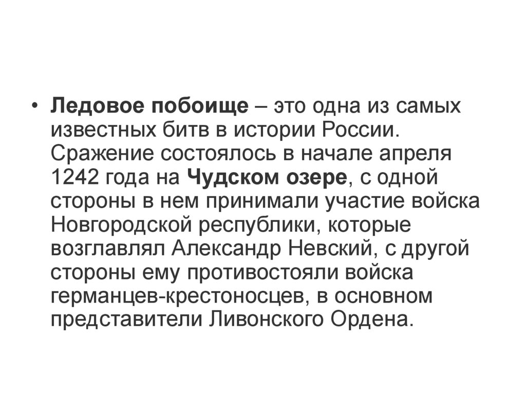 • Ледовое побоище – это одна из самыхизвестных битв в истории России.