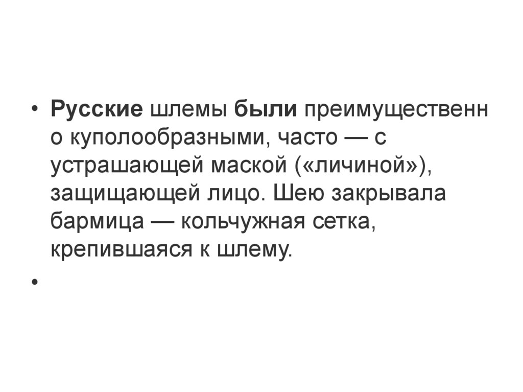 • Русские шлемы были преимущественно куполообразными, часто — с