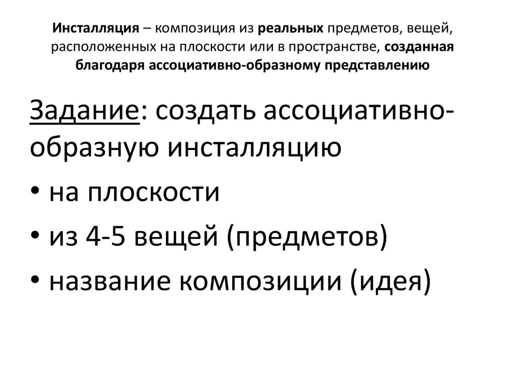 Задание: создать ассоциативнообразную инсталляцию
