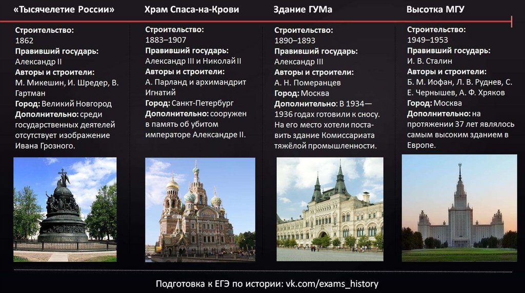 Сборник основных архитектурных сооружений для ЕГЭ с необходимой информацией