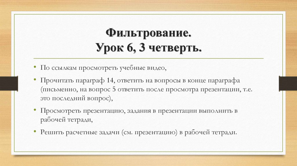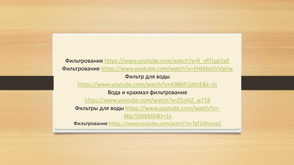 Фильтрование https://www.youtube.com/watch?v=K_sRTJpp1pEФильтрование https://www.youtube.com/watch?v=EHkNoGVVpUw