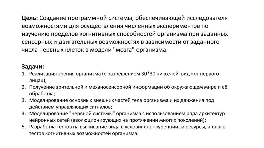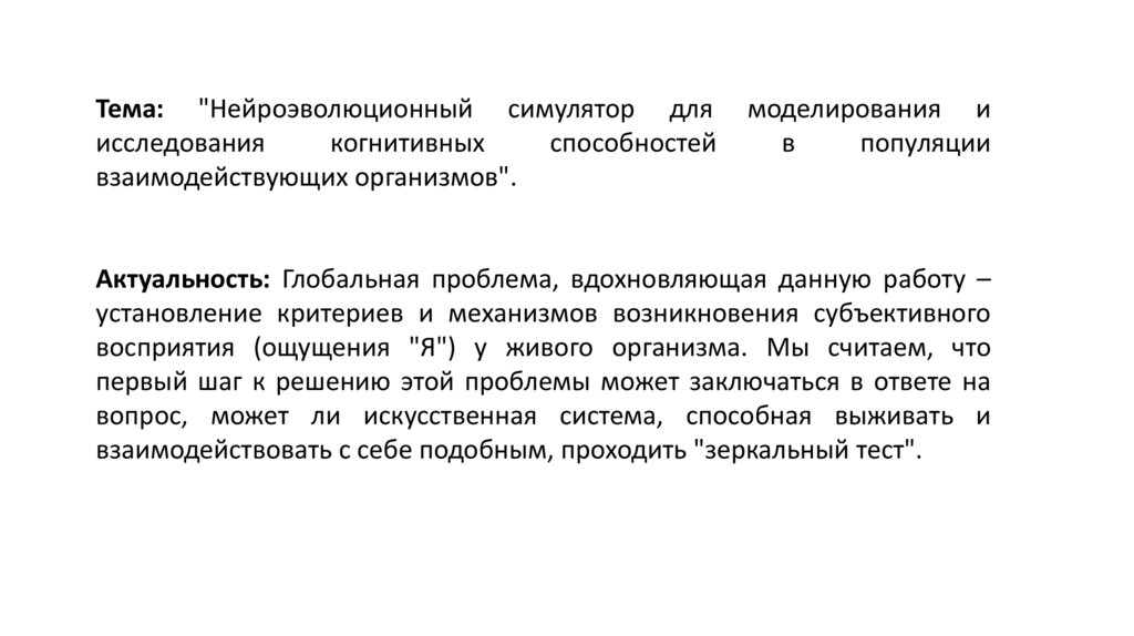 Нейроэволюционный симулятор для исследования когнитивных способностей взаимодействующих организмов