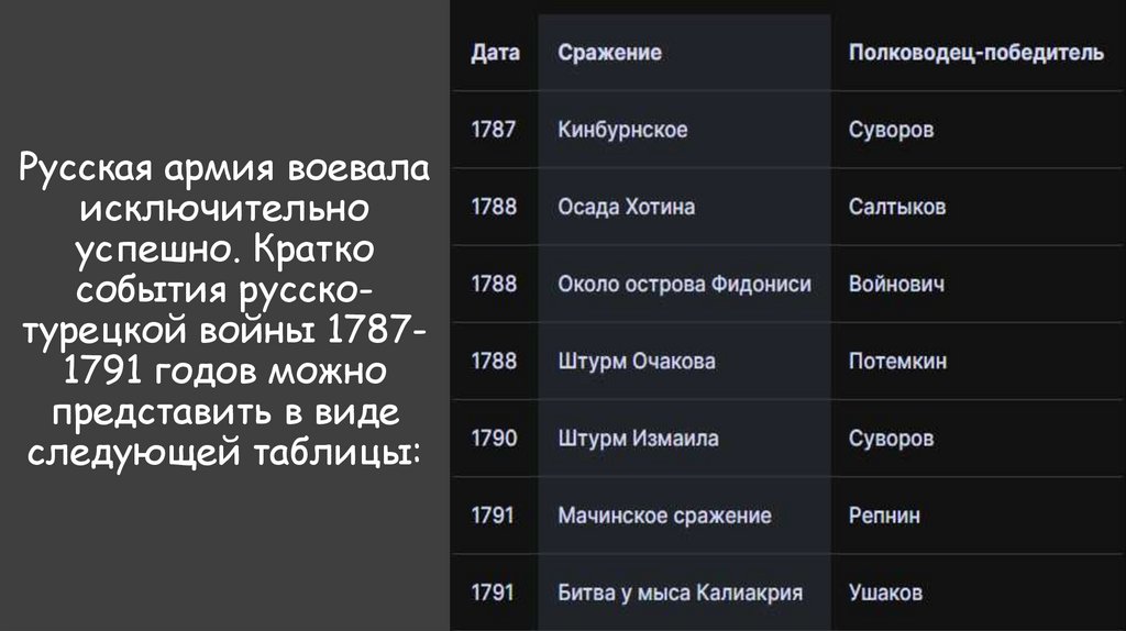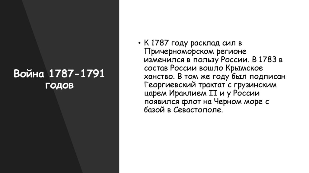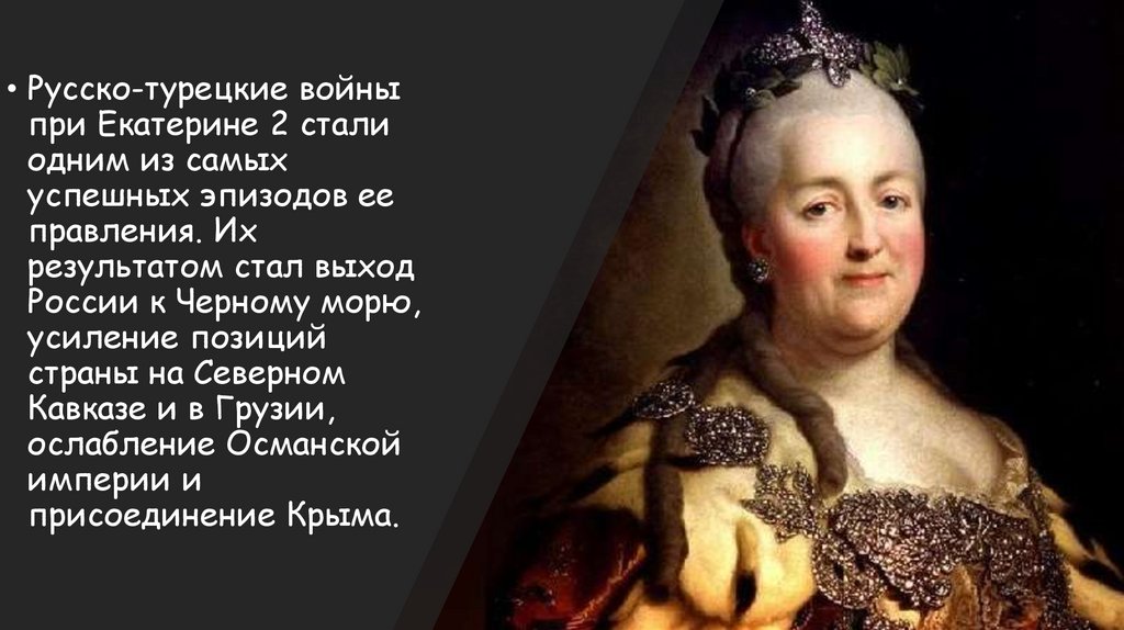 Итоги войныВ 1774 году между империями был заключен КючукКайнраджийский мирный договор. В состав России