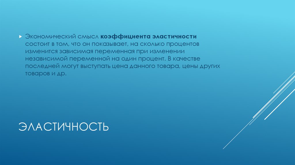 Экономический смысл коэффициента эластичностисостоит в том, что он показывает, на сколько процентов