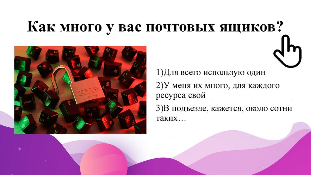 Как много у вас почтовых ящиков?1)Для всего использую один
