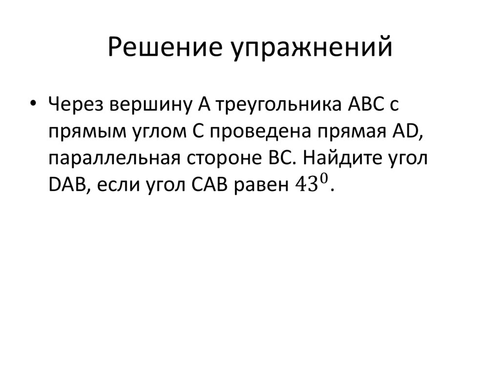 Решение упражнений• Через вершину А треугольника ABC с