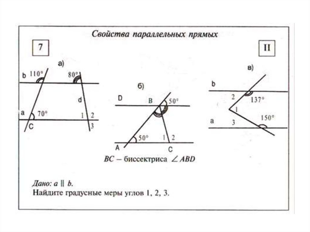 Свойства параллельныхпрямых