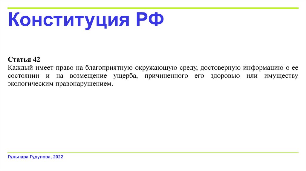Каждый имеет право на благоприятную окружающую среду, достоверную информацию о ее