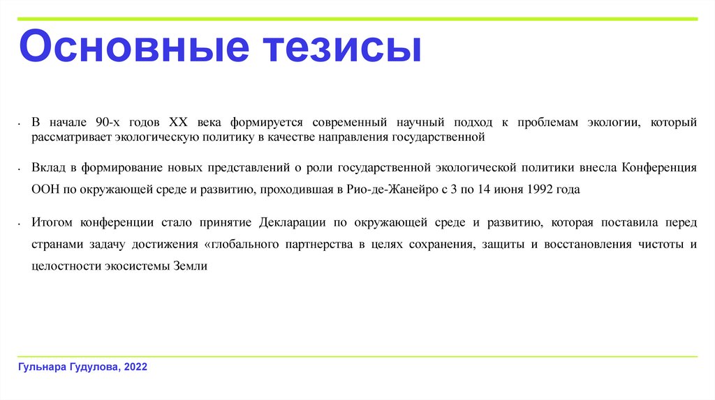 Основные тезисыВ начале 90-х годов XX века формируется современный научный подход к проблемам экологии, который