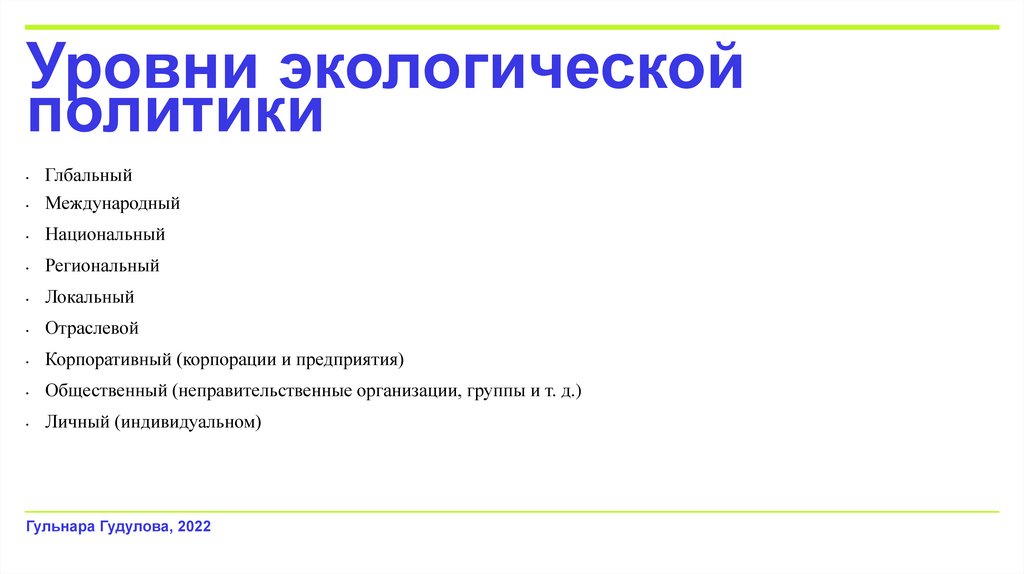 окружающей среды. В таком аспекте экологическая политика выступает в роли важнейшей части