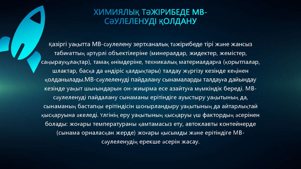 • ХИМИЯЛЫҚ ТӘЖІРИБЕДЕ МВ-СӘУЛЕЛЕНУДІ ҚОЛДАНУ