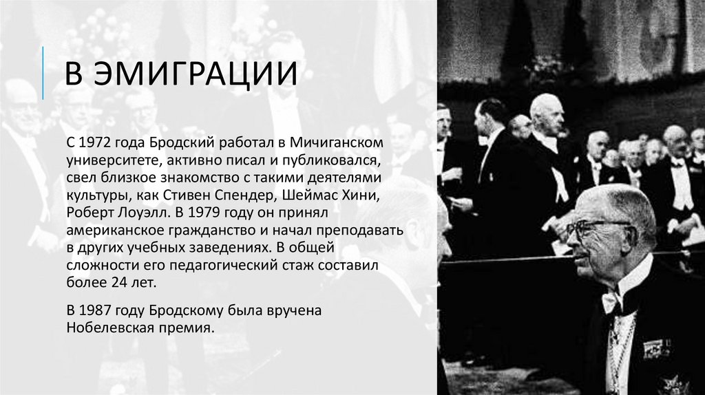 В ЭМИГРАЦИИС 1972 года Бродский работал в Мичиганском