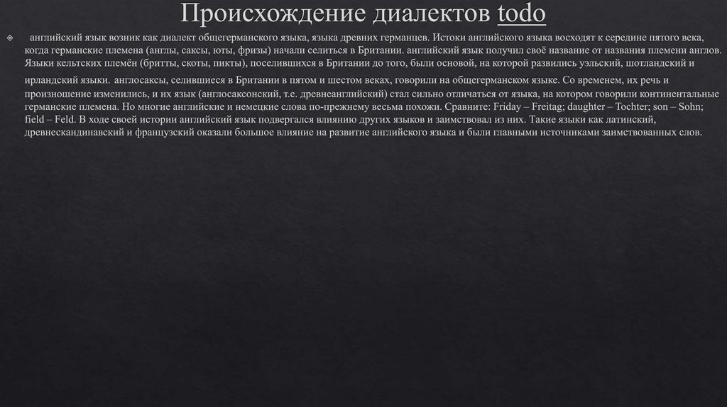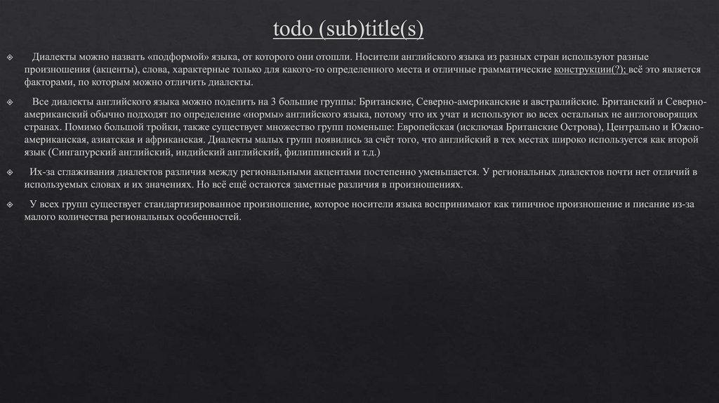 Диалекты, акценты и другие особенности Британского варианта английского языка
