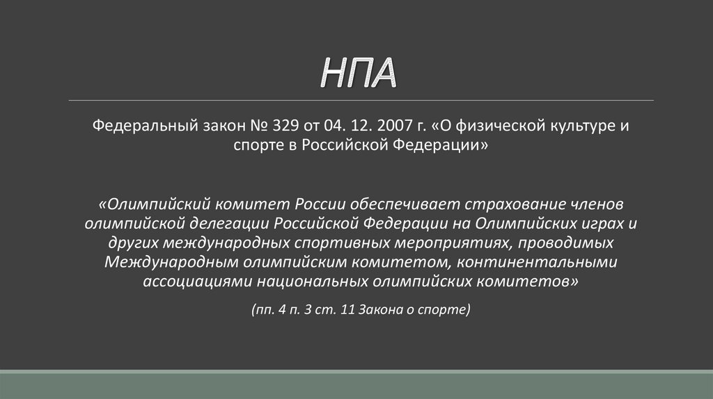 НПАФедеральный закон № 329 от 04. 12. 2007 г. «О физической культуре и