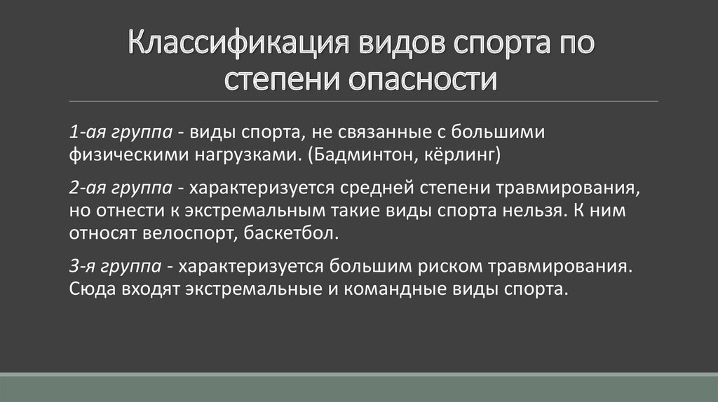 Классификация видов спорта постепени опасности