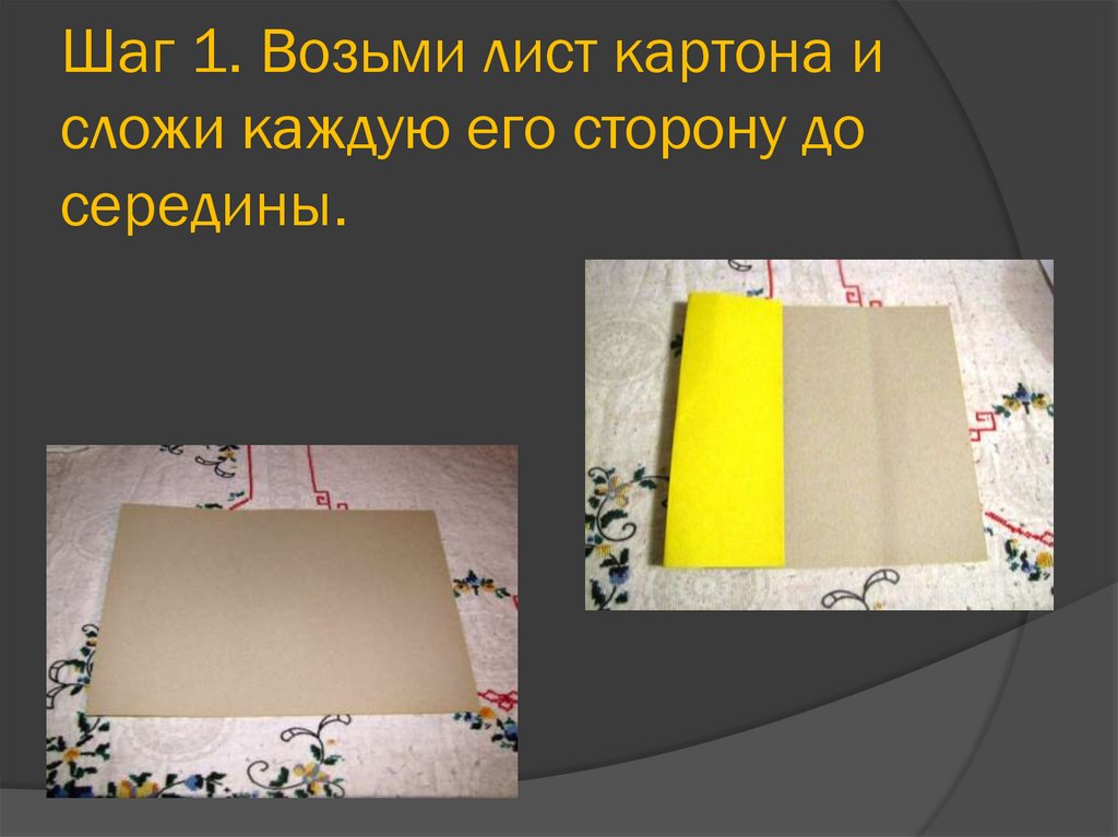 Шаг 1. Возьми лист картона исложи каждую его сторону до