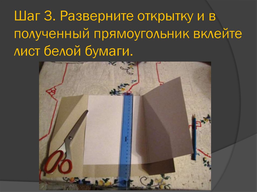 Шаг 3. Разверните открытку и вполученный прямоугольник вклейте