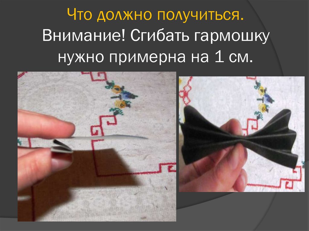 Что должно получиться.Внимание! Сгибать гармошку