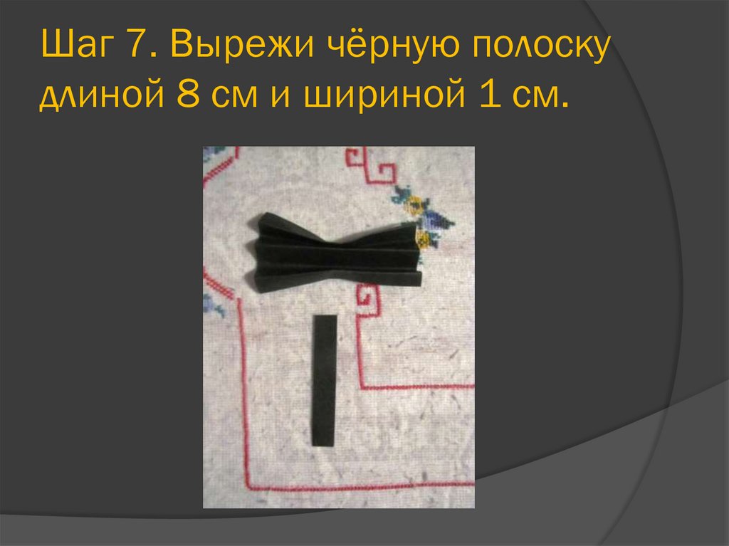 Шаг 7. Вырежи чёрную полоскудлиной 8 см и шириной 1 см.