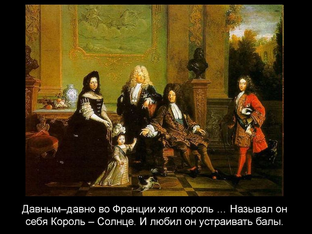 Давным–давно во Франции жил король … Называл онсебя Король – Солнце. И любил он устраивать балы.