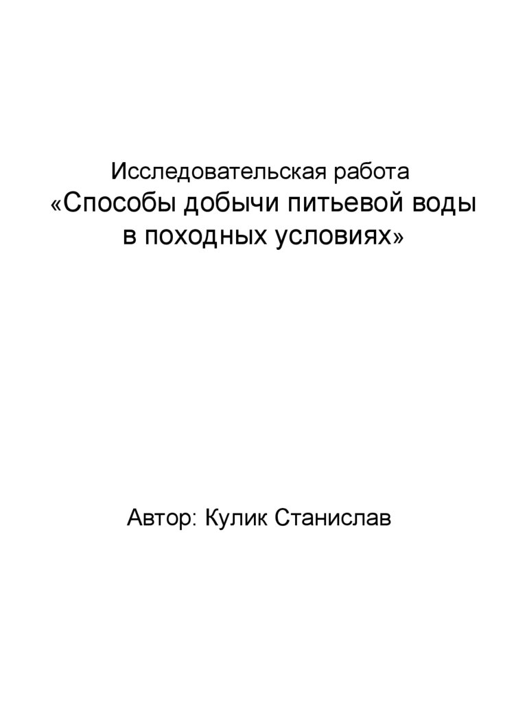 Исследовательская работа«Способы добычи питьевой воды