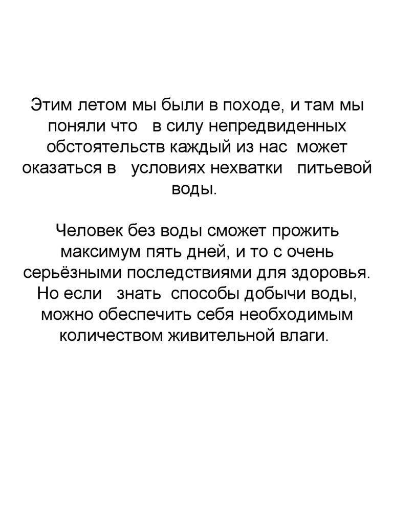 Этим летом мы были в походе, и там мыпоняли что в силу непредвиденных