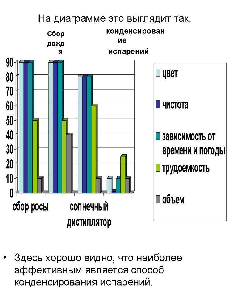 Способ получения воды методомконденсирования испарений.