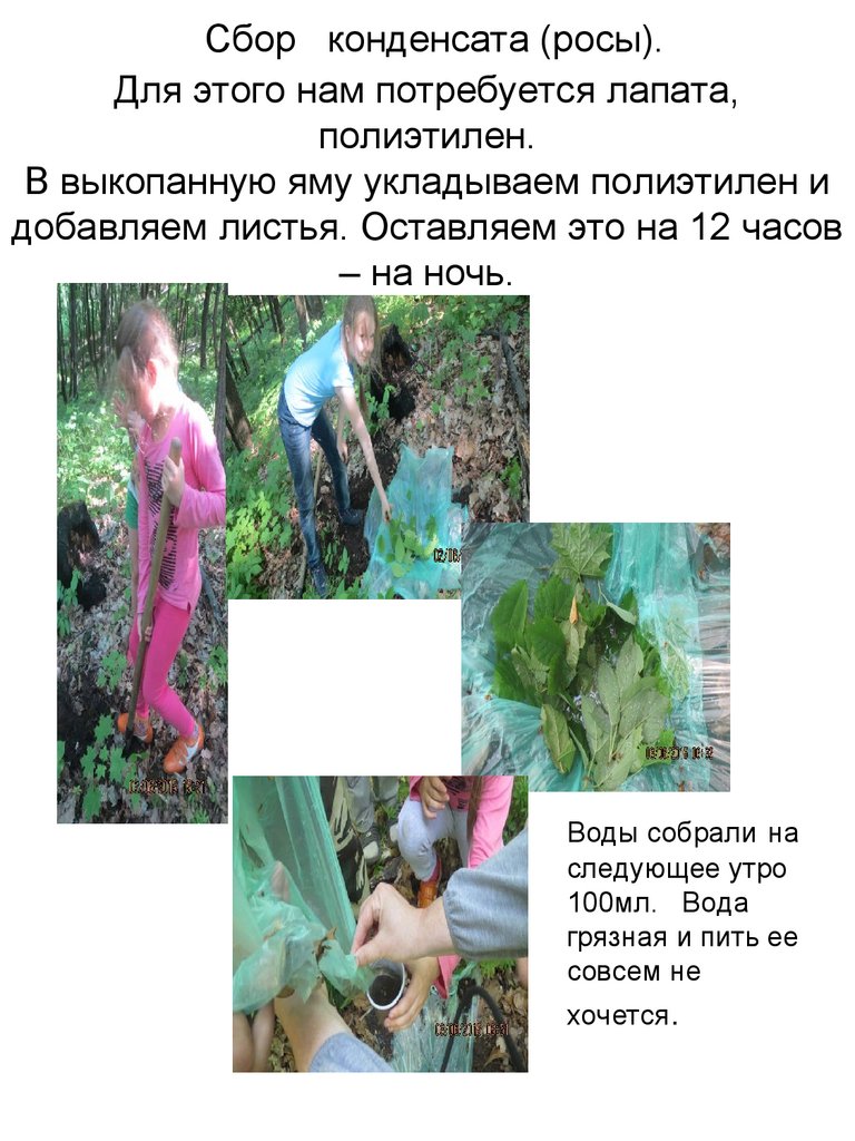 Сбор конденсата (росы).Для этого нам потребуется лапата,