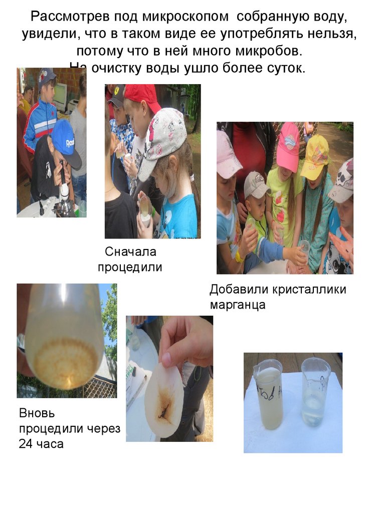 Рассмотрев под микроскопом собранную воду,увидели, что в таком виде ее употреблять нельзя,