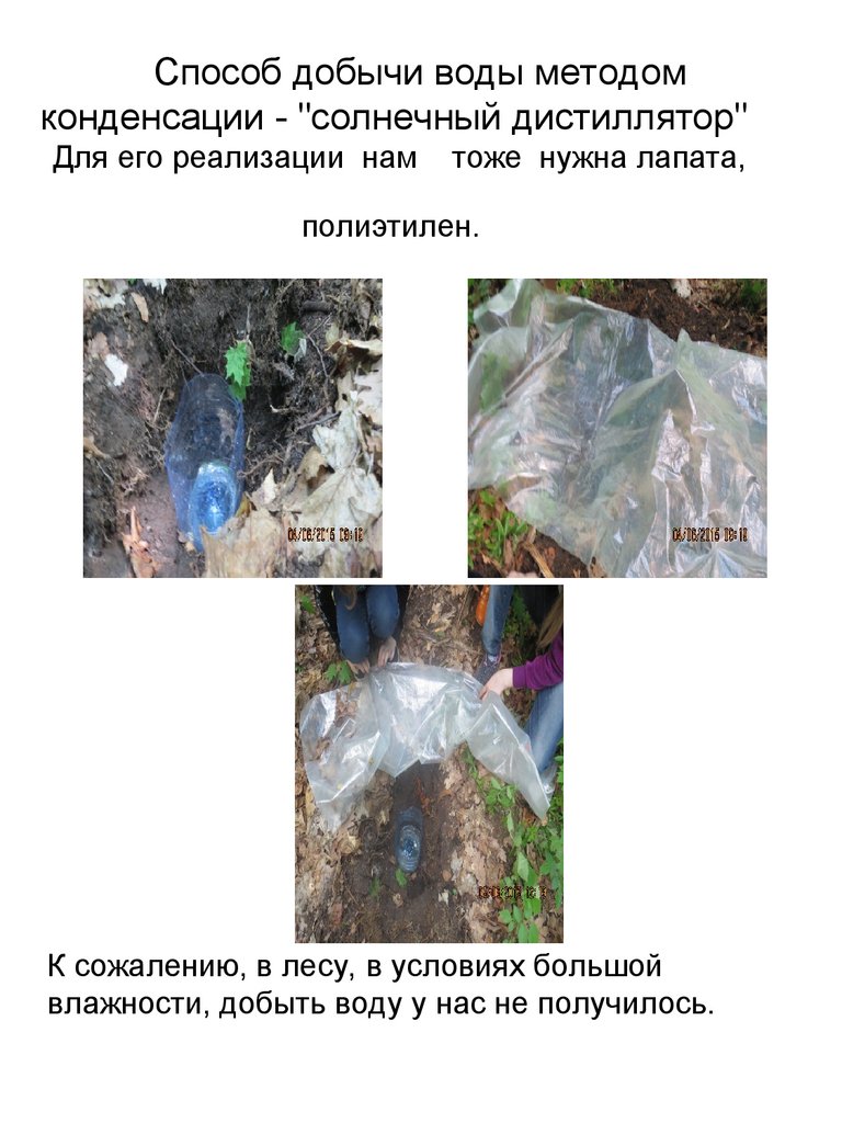 Способы добычи воды в походныхусловиях: