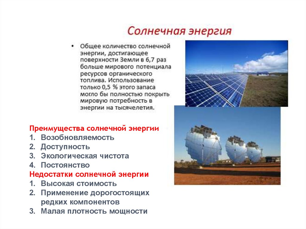 Преимущества солнечной энергии1. Возобновляемость