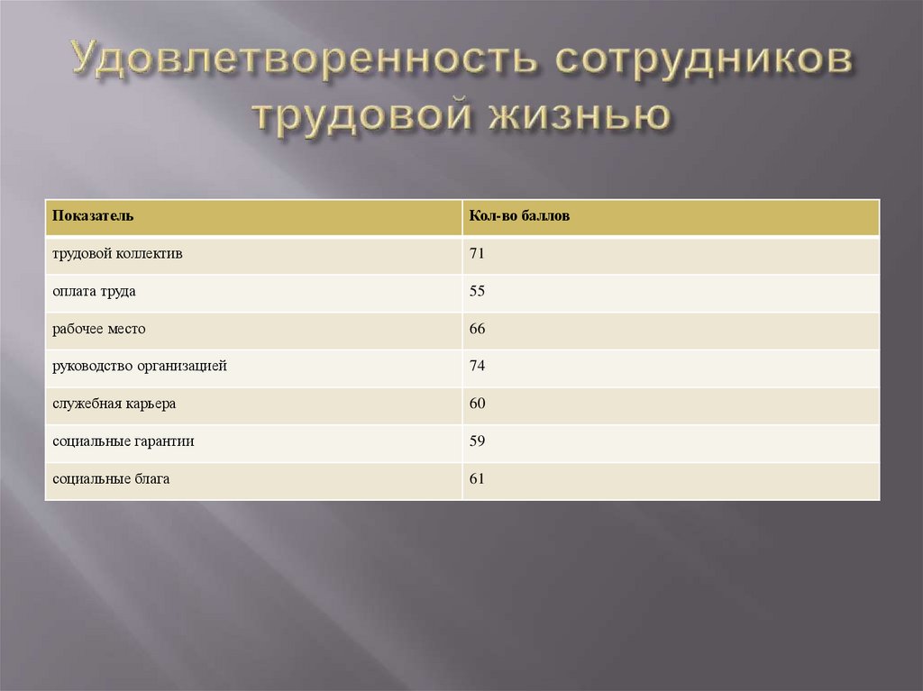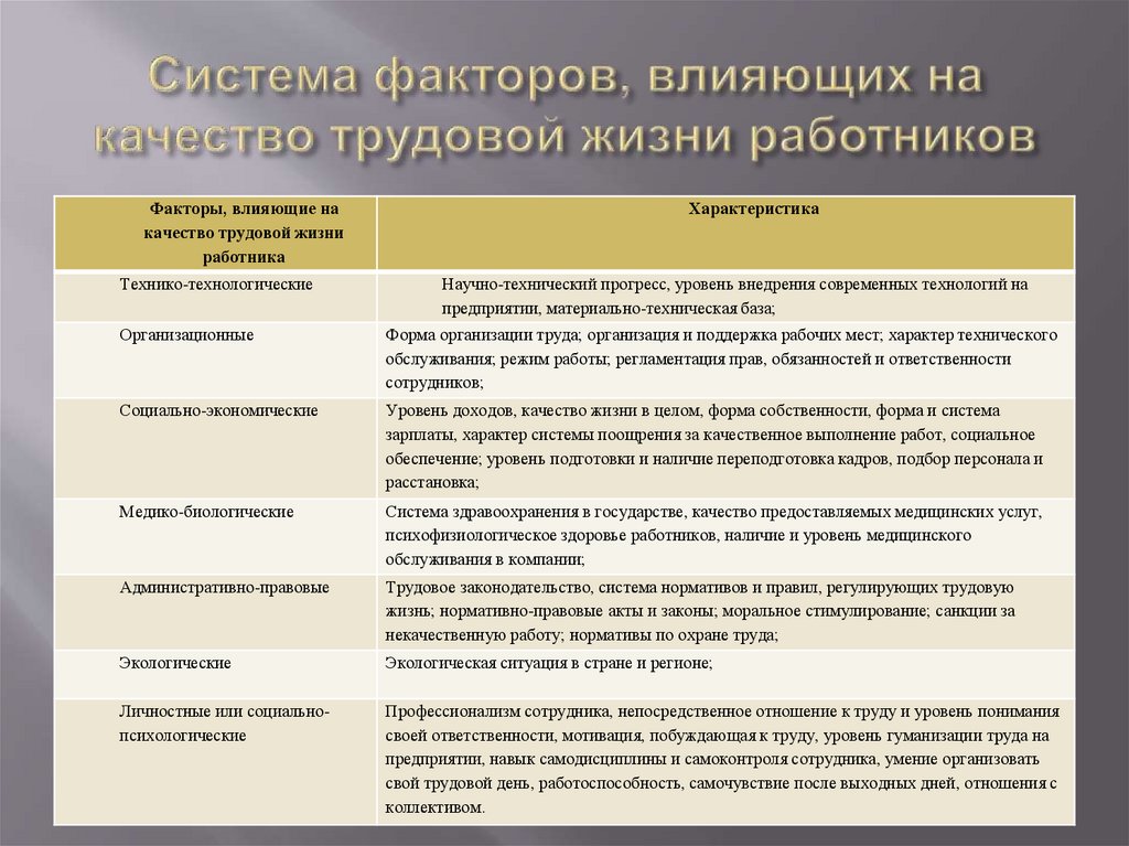 Факторы, влияющие накачество трудовой жизни