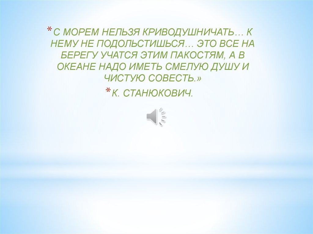 * С МОРЕМ НЕЛЬЗЯ КРИВОДУШНИЧАТЬ… К
