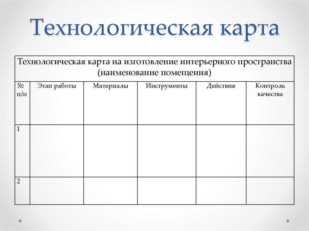 Технологическая картаТехнологическая карта на изготовление интерьерного пространства
