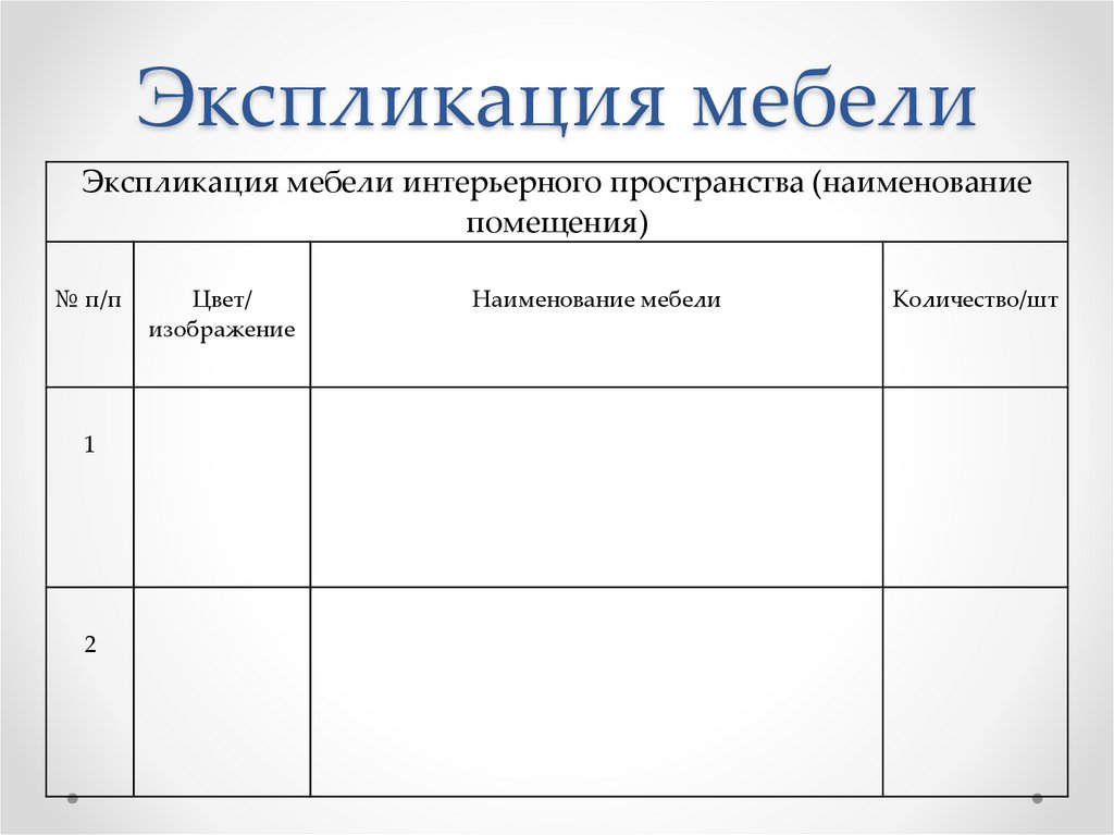 Экспликация мебелиЭкспликация мебели интерьерного пространства (наименование