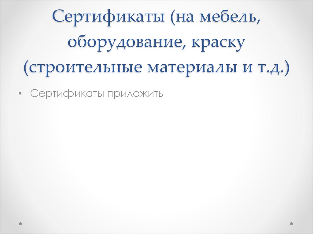 Сертификаты (на мебель,оборудование, краску