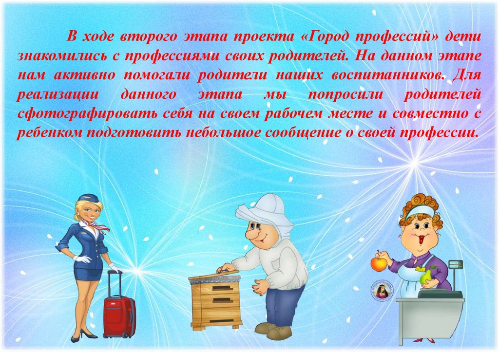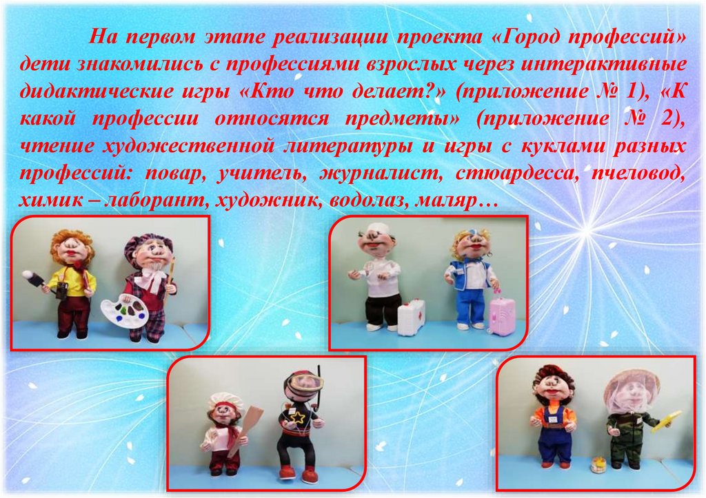 На первом этапе реализации проекта «Город профессий»дети знакомились с профессиями взрослых через интерактивные