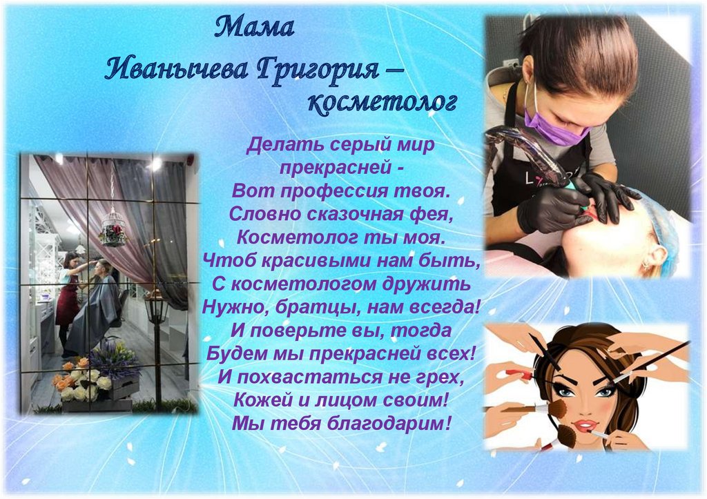 профессий: повар, учитель, журналист, стюардесса, пчеловод,