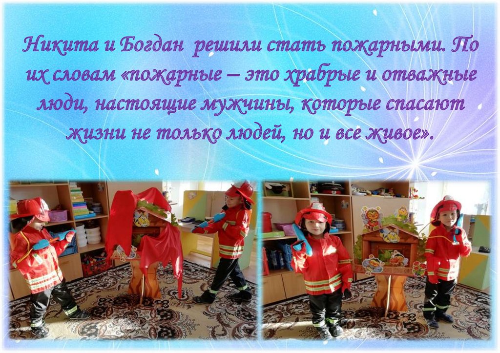 Никита и Богдан решили стать пожарными. Поих словам «пожарные – это храбрые и отважные