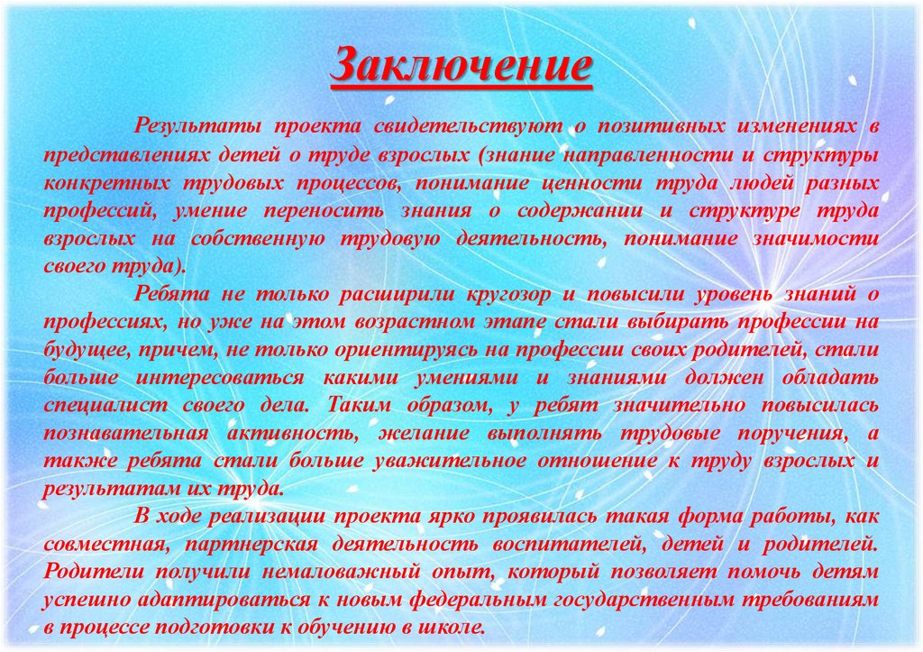 ЗаключениеРезультаты проекта свидетельствуют о позитивных изменениях в