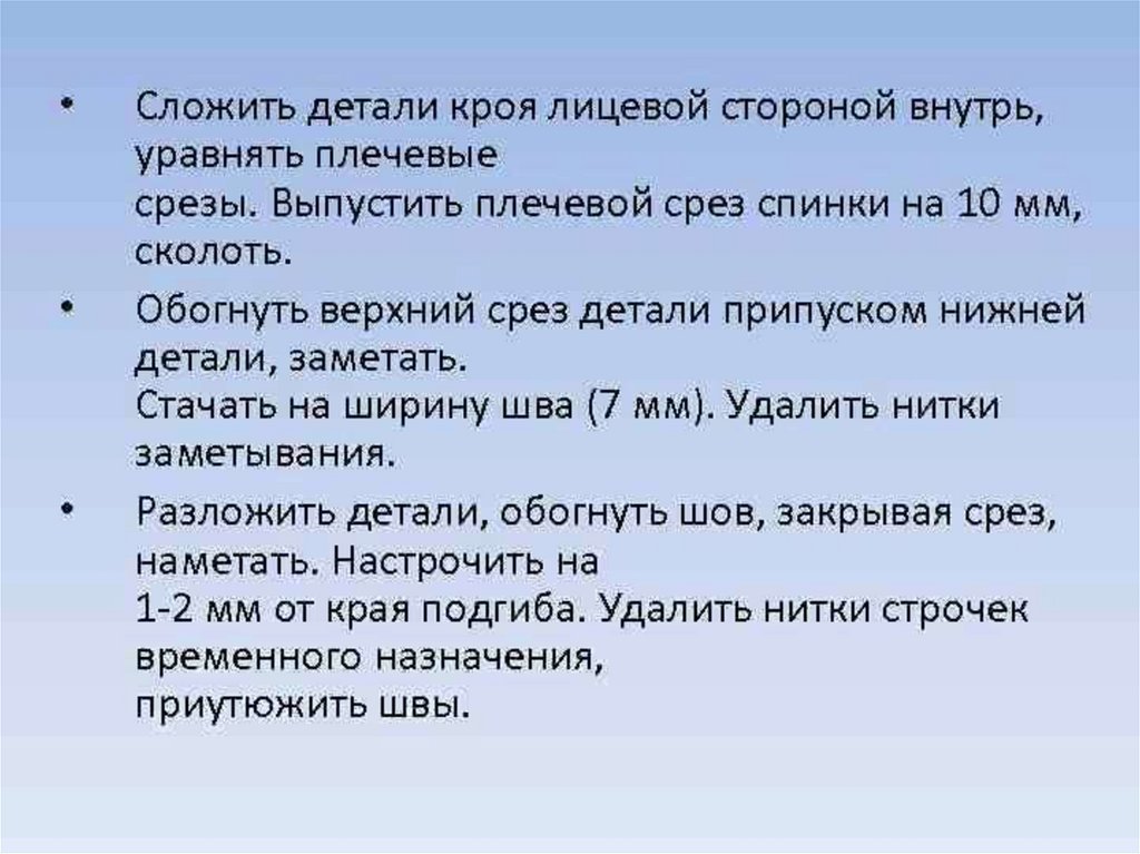Обработка плечевых срезов ночной сорочки. 6 класс