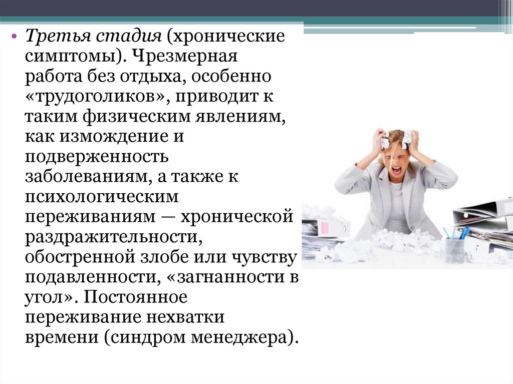• Третья стадия (хроническиесимптомы). Чрезмерная