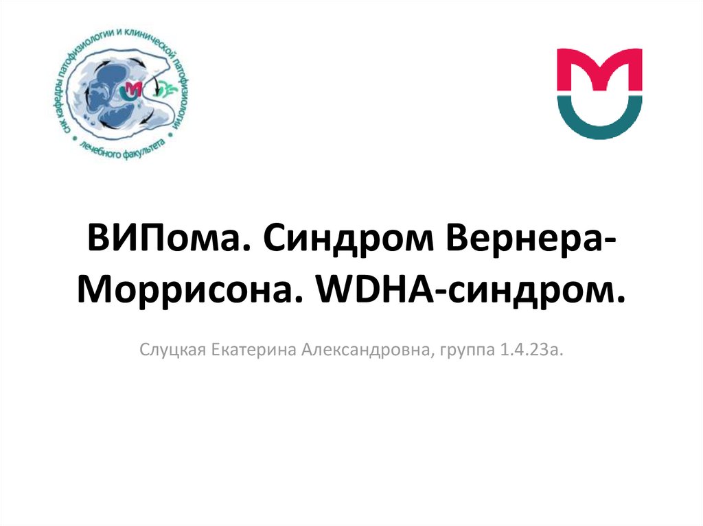 ВИПома. Синдром ВернераМоррисона. WDHA-синдром.Слуцкая Екатерина Александровна, группа 1.4.23а.