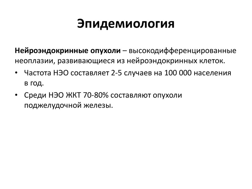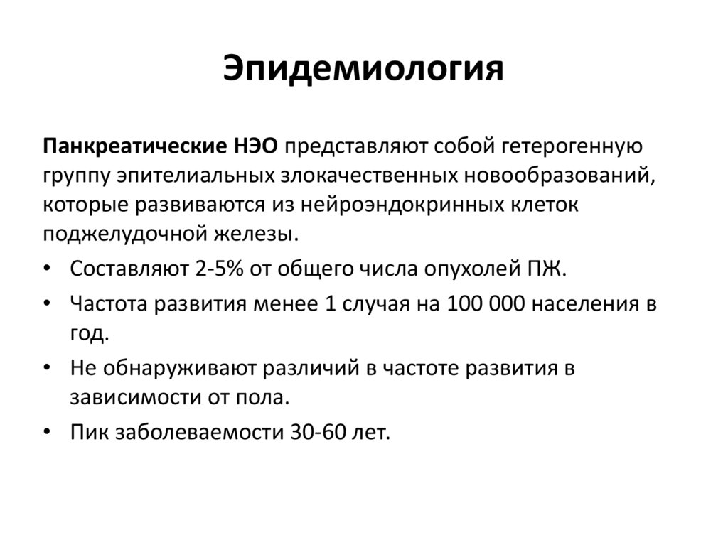 ЭпидемиологияПанкреатические НЭО представляют собой гетерогенную