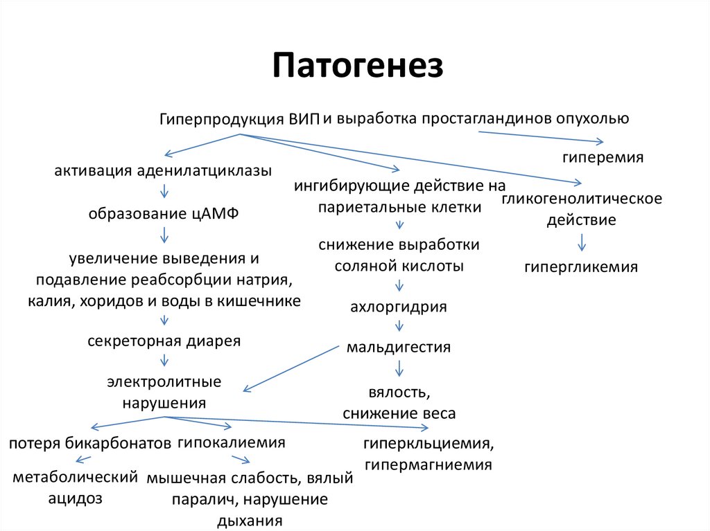 ПатогенезГиперпродукция ВИП и выработка простагландинов опухолью