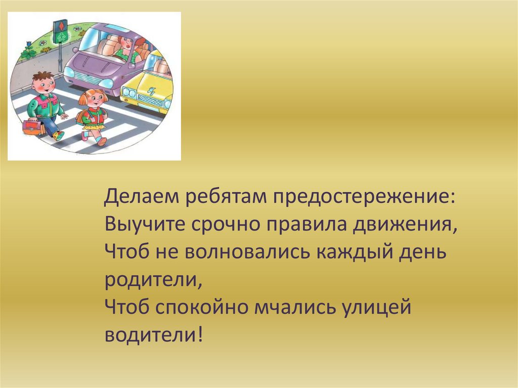 Делаем ребятам предостережение:Выучите срочно правила движения,