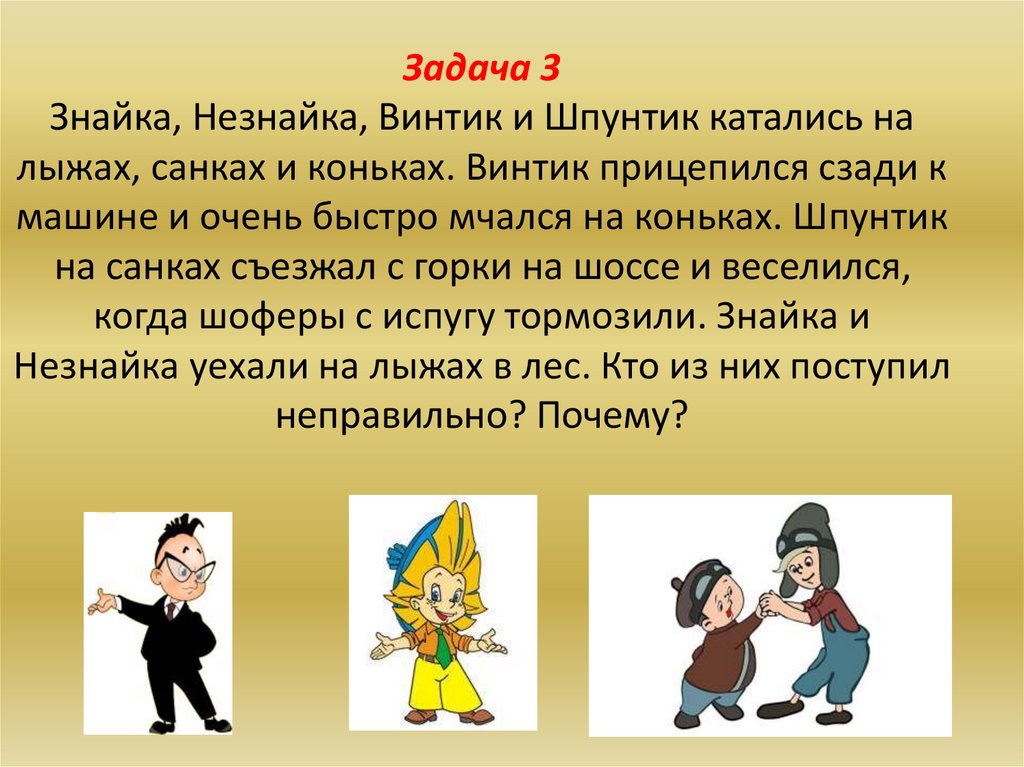 Задача 3Знайка, Незнайка, Винтик и Шпунтик катались на