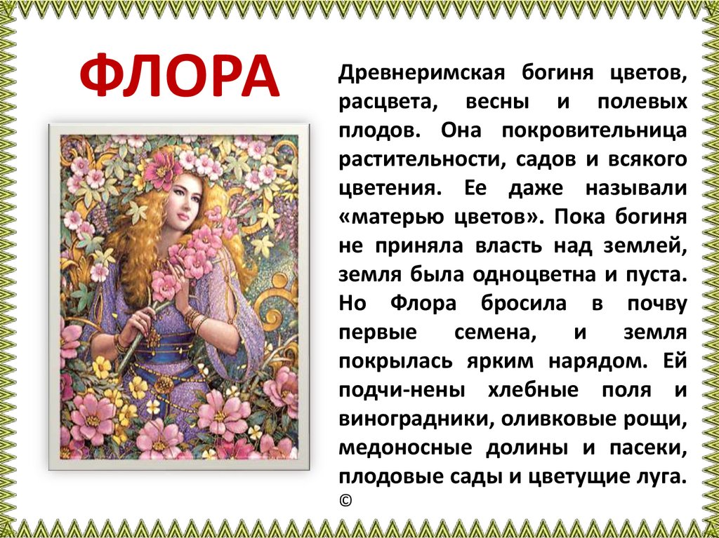 ФЛОРАДревнеримская богиня цветов,