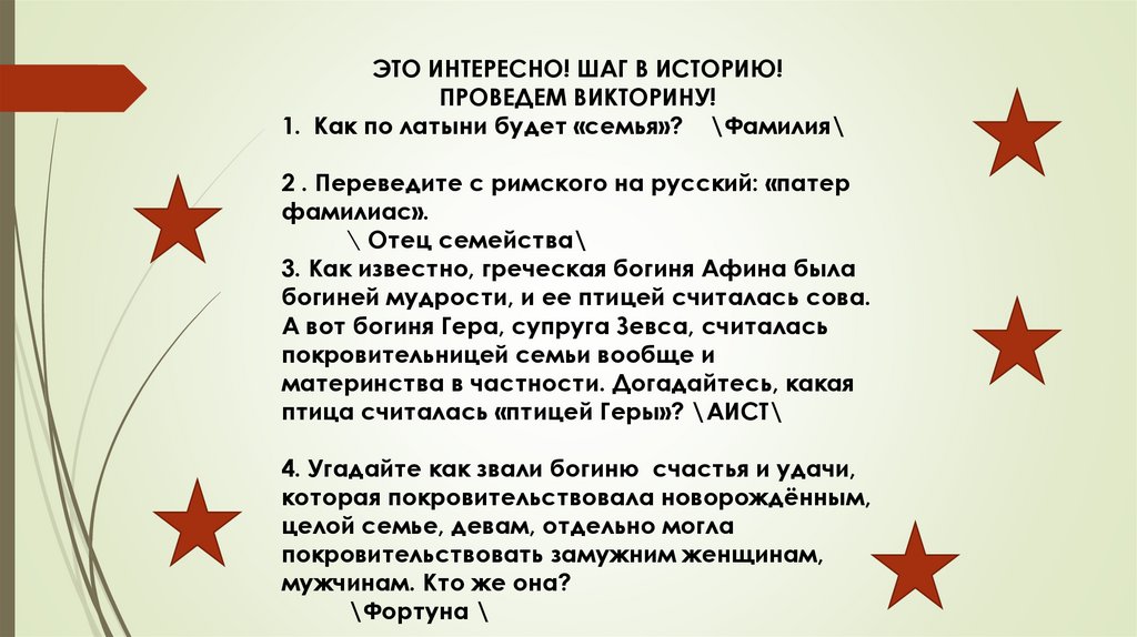 1. Как по латыни будет «семья»? \Фамилия\