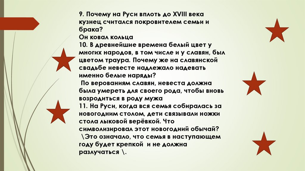 9. Почему на Руси вплоть до XVIII векакузнец считался покровителем семьи и